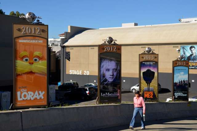 我们坐了两次,为啥?体会两边不同的景色,不同的感受。先从一条两边竖着电影画报的小路走下去,一路体会着环球电影辉煌的历史。