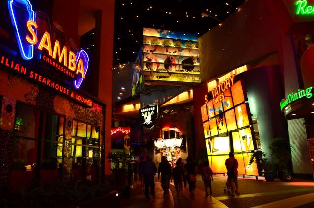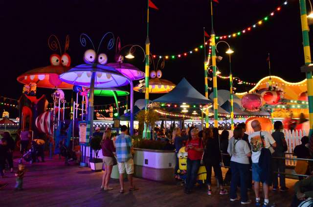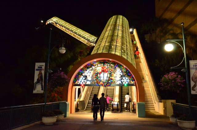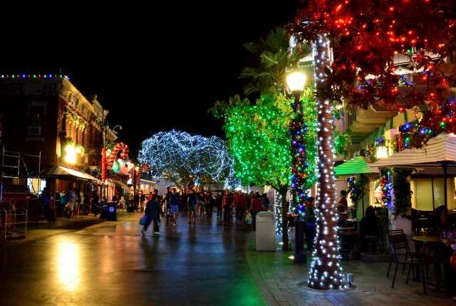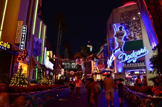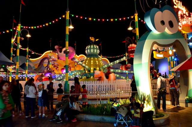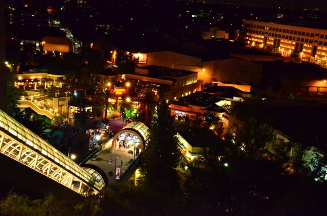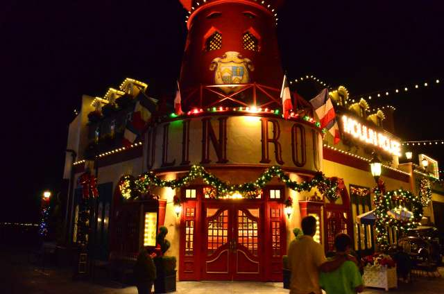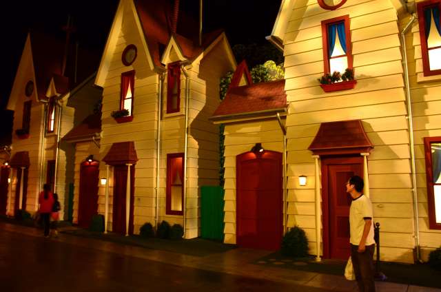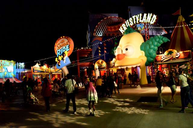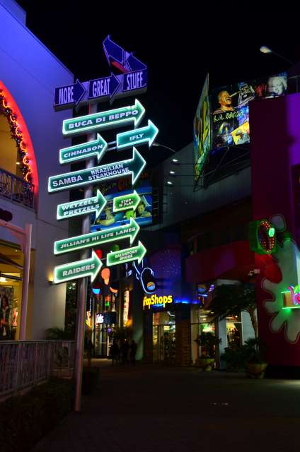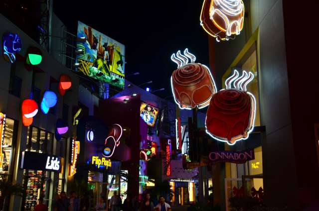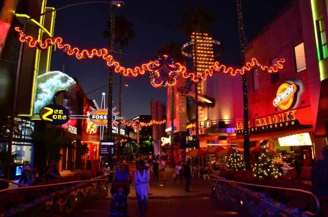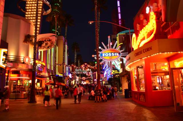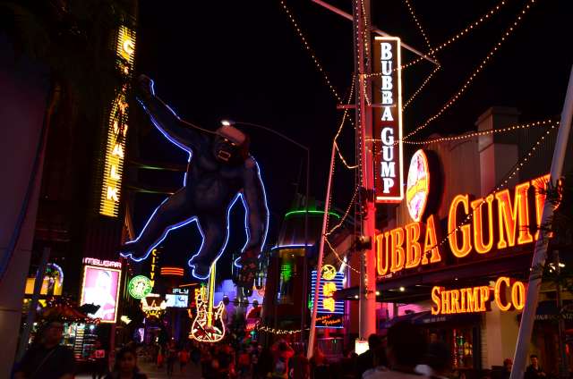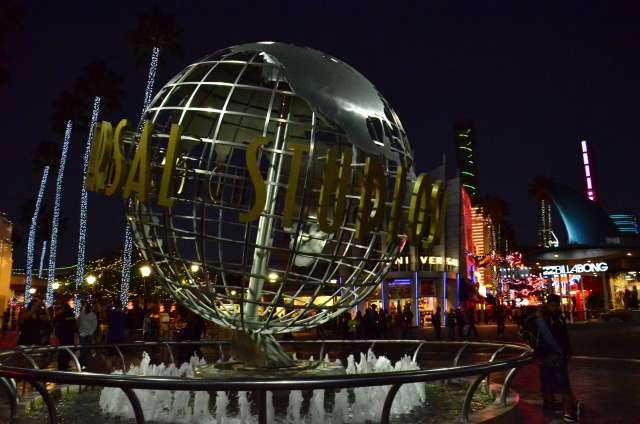 感恩节周游游记之八:环球影城的夜景 看到环球影城的大门口,我就在琢磨她的夜景是如何的美丽。 大门口外的饭店,我们就是在这家吃的午晚饭(午饭和晚饭合一了)。我们三点多进这家饭店,过了一个小时还没上菜,后来才发现饭店前台和后厨沟通上出了差错,最后是我们一家四口吃了一顿免费餐,如果不是我们就等着看夜景,谁也没精力耗在饭店里耗上一两个小时,等我们吃完饭出来的时候天已经黑了。 我觉得大门口这个地球仪和上面的字应该是霓虹灯的才对。 🙄 高高的棕榈树倒是包裹了起来。 白天没去“好莱坞大街”逛逛,刚好晚上去看景。 街边的糖果店里模特穿着水果糖衣服。 相比较之下,Univeral Studio里面的夜景就比较一般了,也就下层部分灯光还可以。 上层也就Simpsons这片广场还可以: 居高临下看下层: 大门口附近: Share this:SharePrintFacebookPinterestLinkedInTwitterTumblrRedditPocket