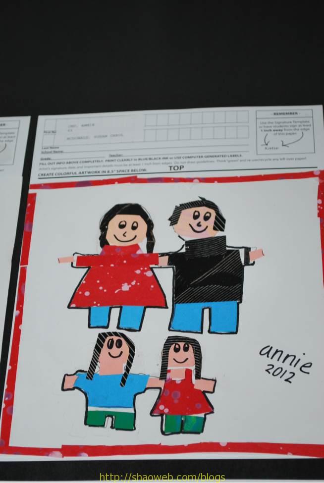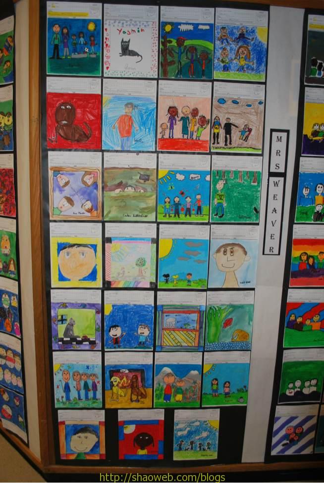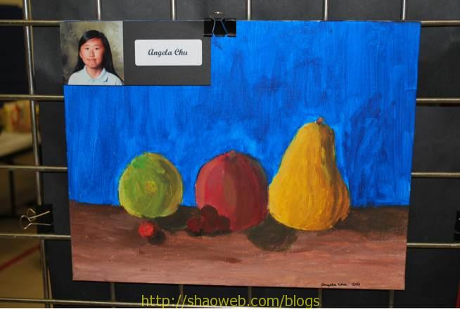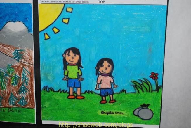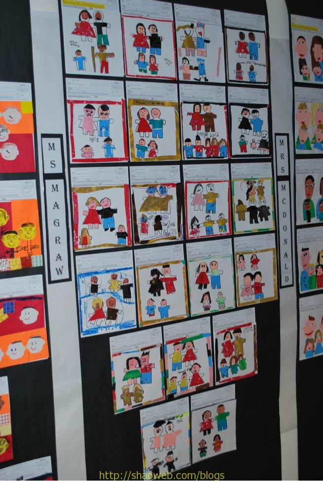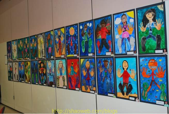 艺术展和合唱表演 (Art walk and singing show) 今天晚上学校举行艺术展览,把孩子们这学期的艺术品都摆出来展示一下。 安妮班上的全家福: 安琪班上的: 安琪班上的静物临摹: 朋友孩子班上的,二年级,把手和脚拓印出来加上身子其他部分。安琪也曾经干过: 安妮的全家福: 安琪的临摹: 安琪的姐妹俩: 还有学前班,一二年级的合唱表演。(谁照的这张?!难道是我?!豆腐块快拿来!) Share this:SharePrintFacebookPinterestLinkedInTwitterTumblrRedditPocket