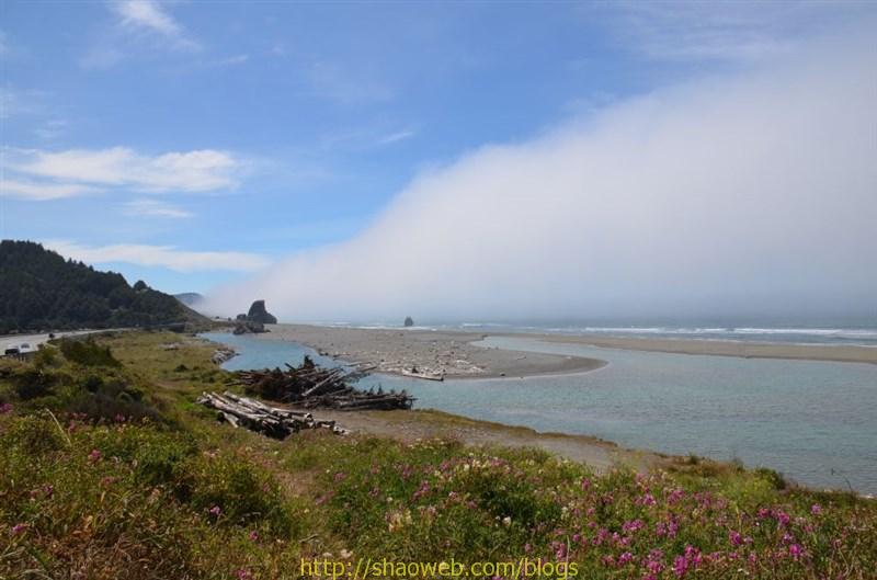 我们接着走,出了雾区后,很快到了Gold beach。能远远看到海面上升起一股白茫茫的云雾向右边流淌而去,觉得大自然真是神奇,地图上看不出啥特别之处的地方,一路走来就觉得每一段都非常有特色。西海岸绝对值得从上到下开上一回。