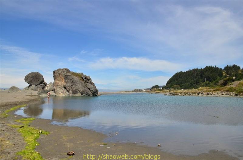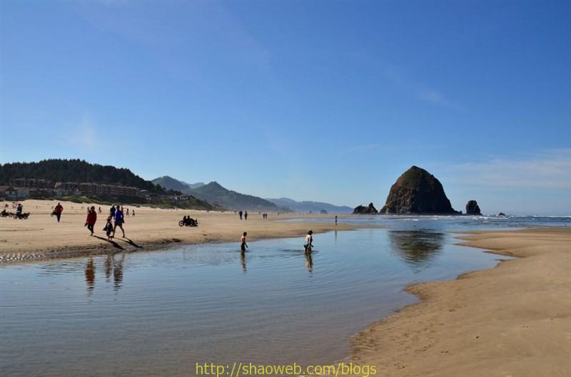 第二天一早9点出发,先到不远处的Cannon beach,这是一个很著名的沙滩城市,沙滩上有几个大礁石,下面海生物丰富,在低潮的时候孩子们可以去研究一番。沙滩很长也很平缓,沙子很细,上佳的带孩子们玩的沙滩。我们在这个沙滩上玩到11点多才再次出发,所以后来的小沙滩,我们就停下来稍事休息,不再做长时间停留,好的沙滩最多停留30分钟。