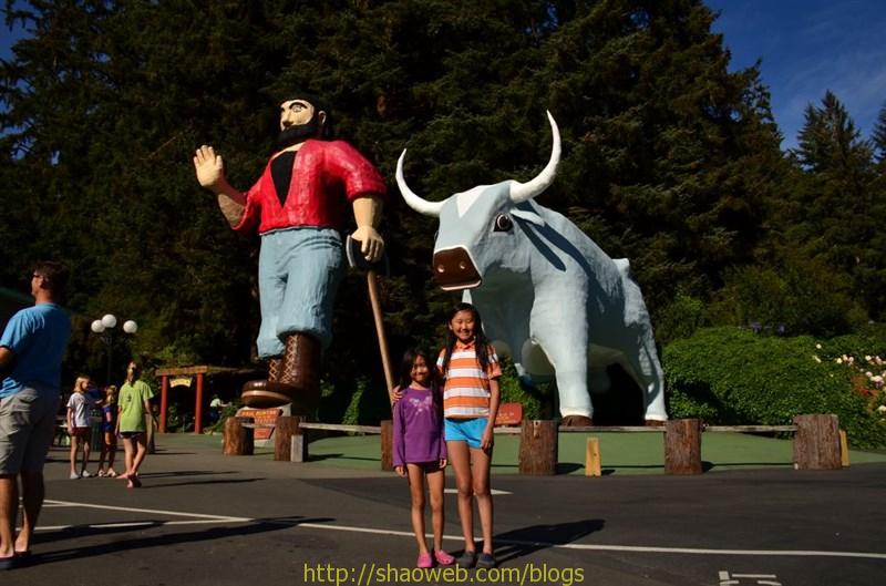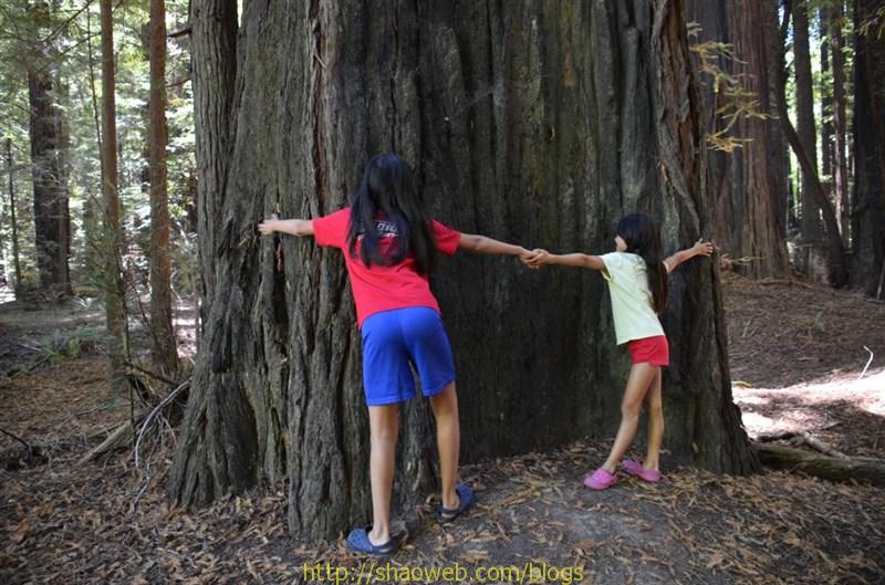 第四天剩下将近300迈的路程,而且没有了沙滩,只有红杉森林可以看。在红杉森林公园HumboldtRedwoods State Park附近,安妮要下车上厕所,我就顺道拐进去了。这个也有一个博物馆,展览的是动植物和伐木有关的东西,我们到马路对面的树林里玩了会儿,“丈量”了一下红杉有多粗,接着往前开,这条森林里的路(271)跟101平行,所以想近距离接触感受一下红杉的,可以选择走这条路,慢悠悠开过去,幽静而壮美,很值得。安妮很骄傲地说,我们应该感谢她,如果不是她要求停车上厕所,我们就又错过了。红杉森林里有几处可以开车从树洞中穿过,我看了录像后觉得自己技术可能没那么好,小车还可以,大车从那个刚刚好的树洞里钻,我怕进去出不来了,所以就没答应她们去钻树洞,俩人郁闷地不行,我安慰她们以后可以让爸爸带着我们开小车来。