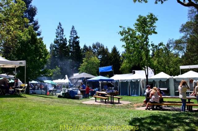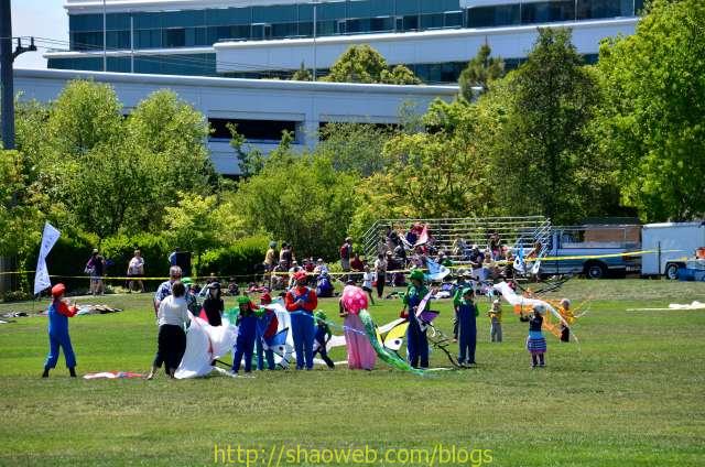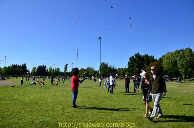 一个词来形容:”人山人海“,趴车的地方都难找。这个活动是在San Ramon的中心公园举行的。棒球运动场上是风筝比赛/表演的地方,旁边的小公园是自由放飞风筝的地方,有一个角落全是小吃,有一片是各种游乐设施,还有一片是一个个小活动booth,从face painting、武术、武士道、印度舞蹈、绘画、手工等等,跟国内的庙会一样热闹。