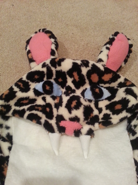 谁知过了几天,还有十天就万圣节了,二小姐人家改主意了。妈妈,你给我做一套Cheetah吧。很久以前做过一次,搬家的时候上衣丢了,那次是用了Costco买的马甲,自己加了袖子和帽子,然后做了条带尾巴的裤子而已。