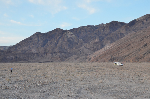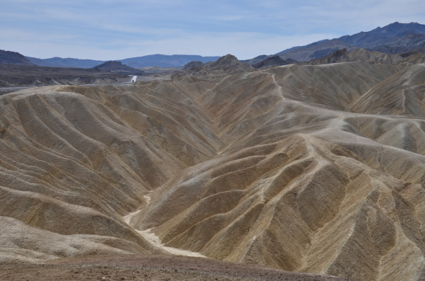 工作人员听说我们开的是RV,建议我们往南开到badwater basin,那里是美洲地势最低的地方,海平面以下282英尺。如果野花很多的话,值得走谷内的178号公路,这是公园出资建设的,路肩没那么宽。但是今年野花不多,就不值得了,可以从坏水盆往回走,从190出去,看Zabriskie Point,然后沿着127往南就可以到15号公路,再往西就可以回湾区了。