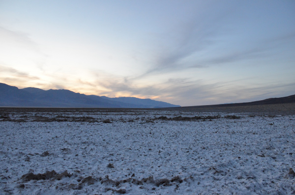 她说晚上在死谷看星空也是很漂亮的,可惜这几天月亮太亮。到了晚上我们才知道,何止是太亮,很明亮的月亮,再加上被月光照亮的半天的白云,山谷里夜风一阵阵大呼小叫,煞是冷清,天上的星星也只有几颗明亮的才露个小脸,更加冷清,看银河的美梦就这样被冷清没了。