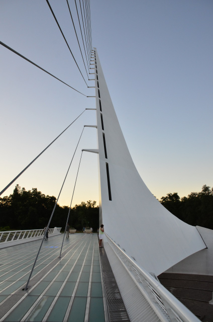 从Lema Ranch出来的时候,已经快要日落西山了。我们趁着最后的一丝夕阳余辉,去了Redding的玻璃桥Sundial Bridge: