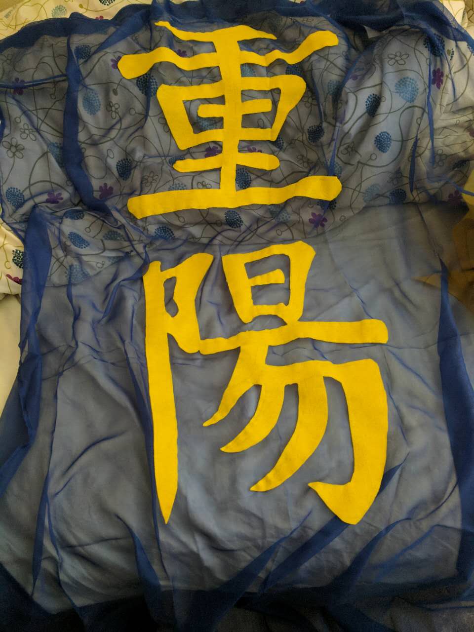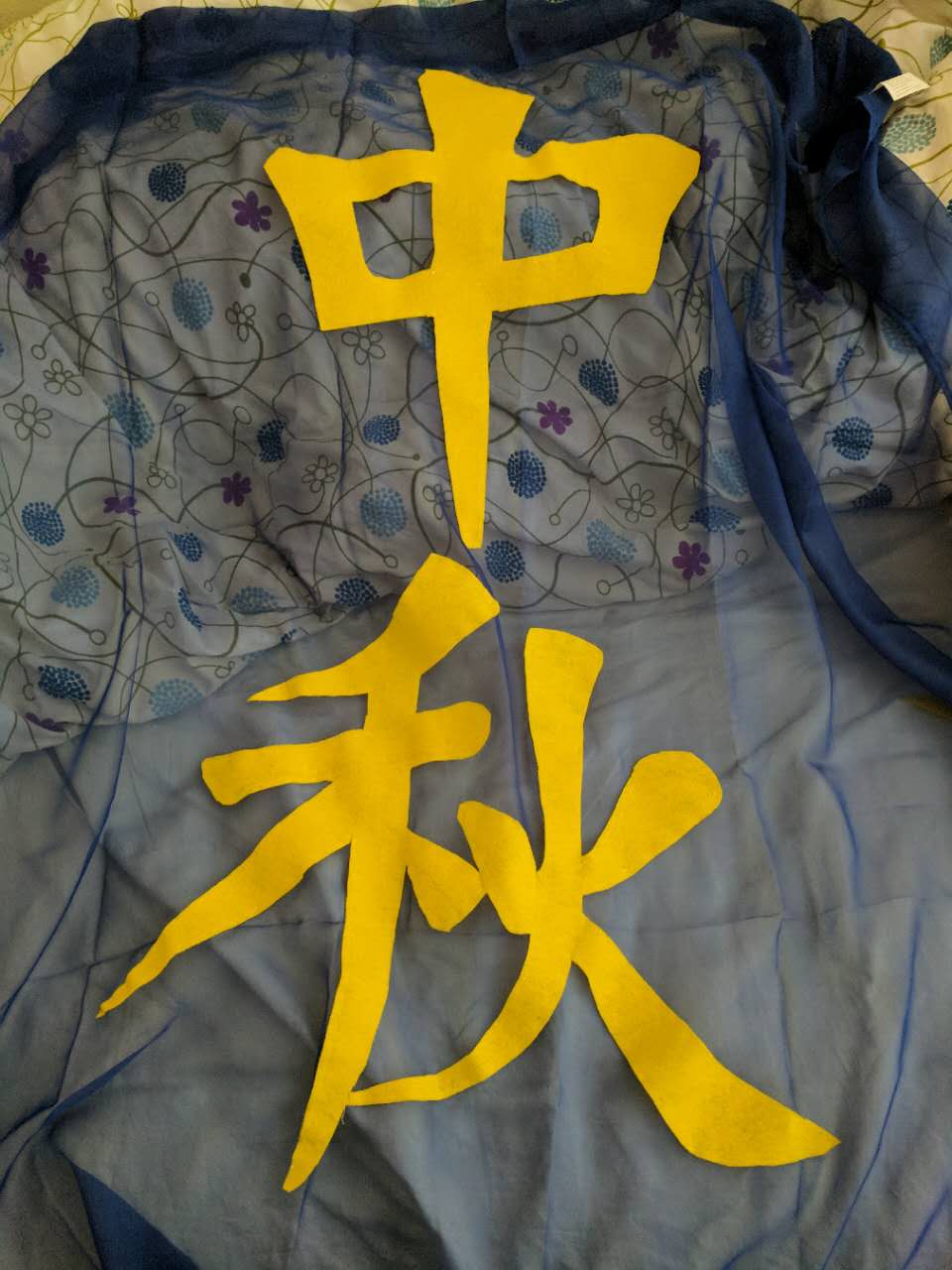 货比三家之后,Margaret在Amazon上下了订单买轻纱(其实是窗帘)和灯笼,“中秋” “重阳”四字是我到Joanne布店,买了两码的软布,准备到时候自己写字、剪裁、粘上去。